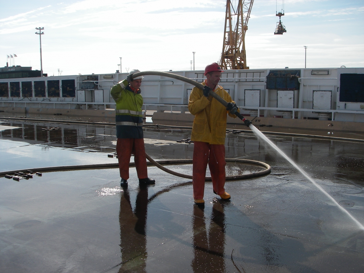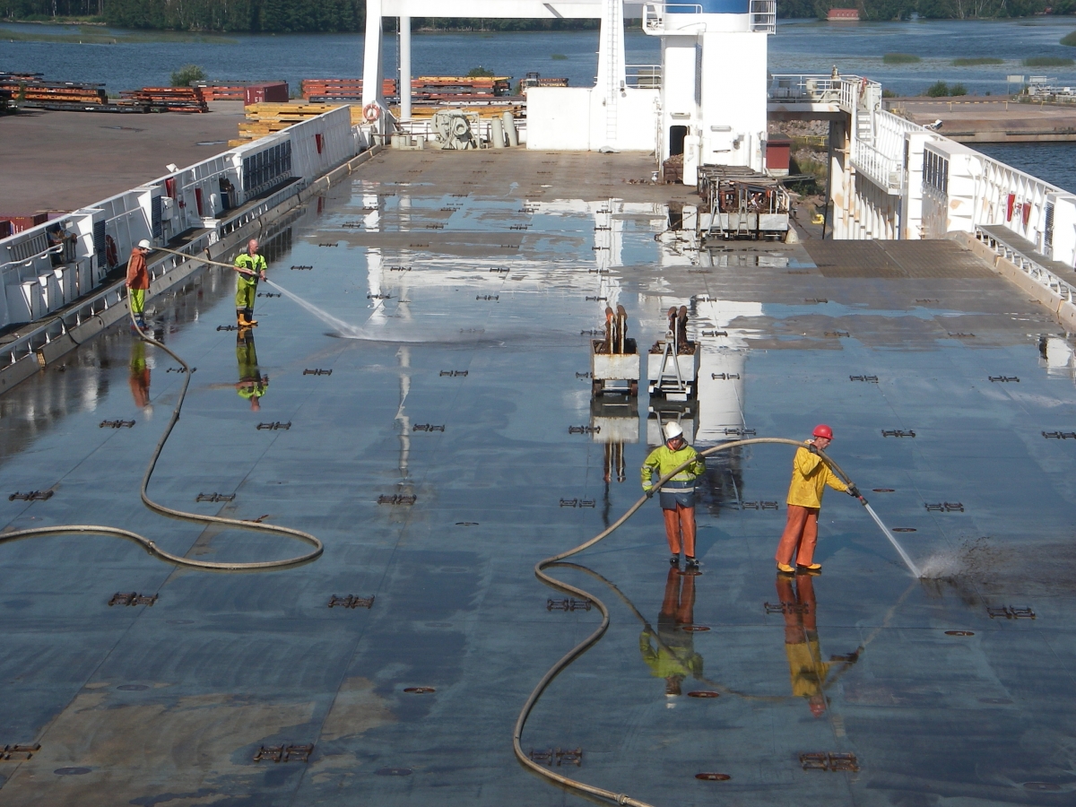 Cleaning of the deck and premises of a vessel.